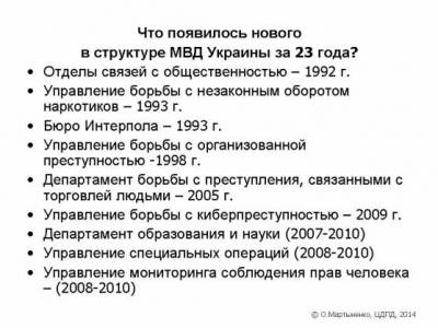В числе приоритетных заданий реформы Концепция Ю.Кравченко предполагала, как минимум, пять изменений в структуре органов внутренних дел: